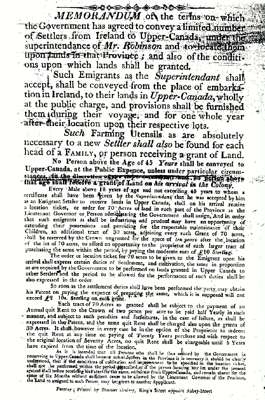 See Peterborough County Ontario Genweb Page for passenger lists and further information about the Peter Robinson's Settlers.