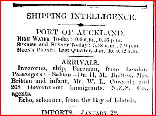 PORT OF AUCKLAND ARRIVALS Invererne, ship, Foreman, from London. |